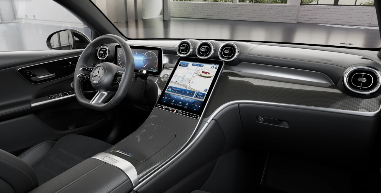 - Linia wyposażenia wnętrza AMG: deska rozdzielcza i górna część drzwi obszyta materiałem skóropodobnym,