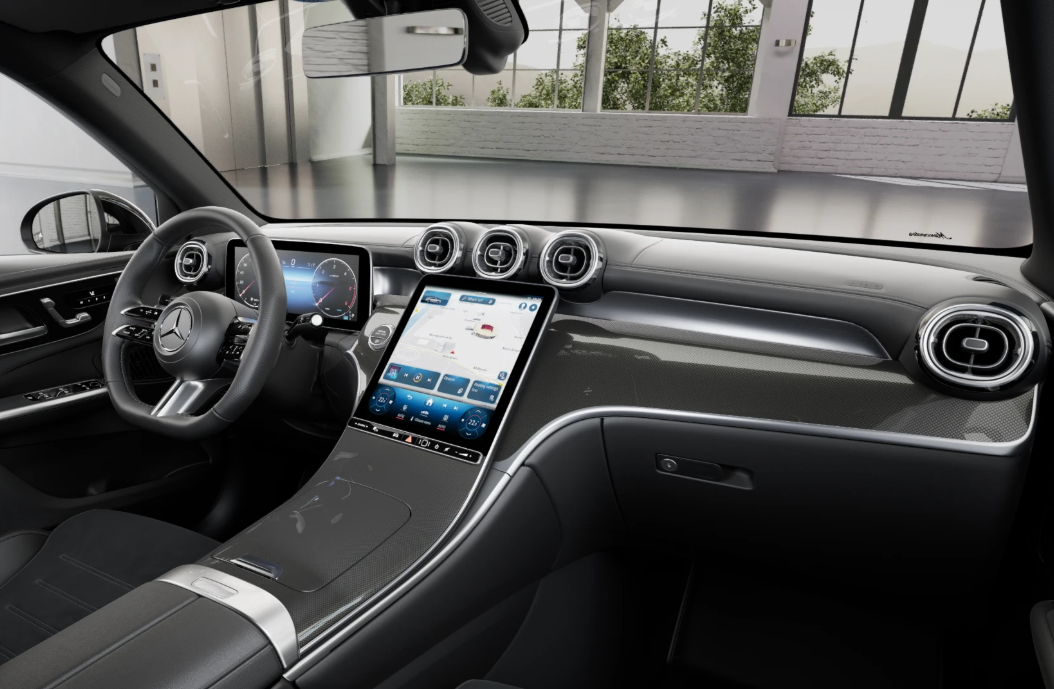 - Linia wyposażenia wnętrza AMG: deska rozdzielcza i górna część drzwi obszyta materiałem skóropodobnym,