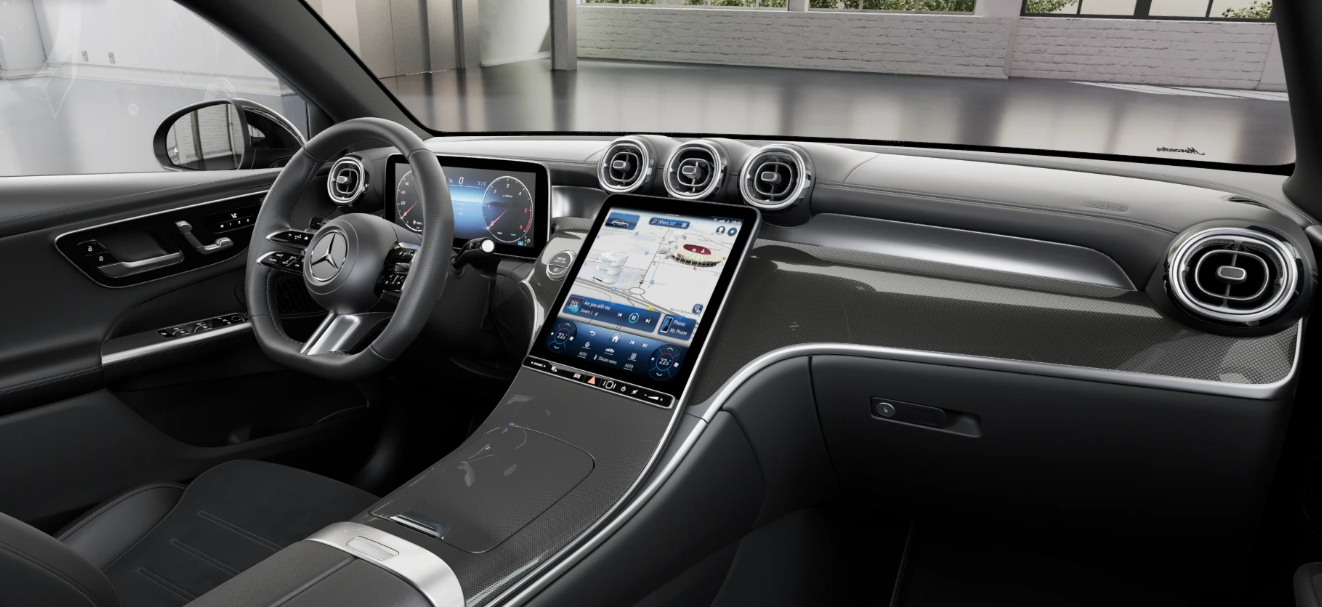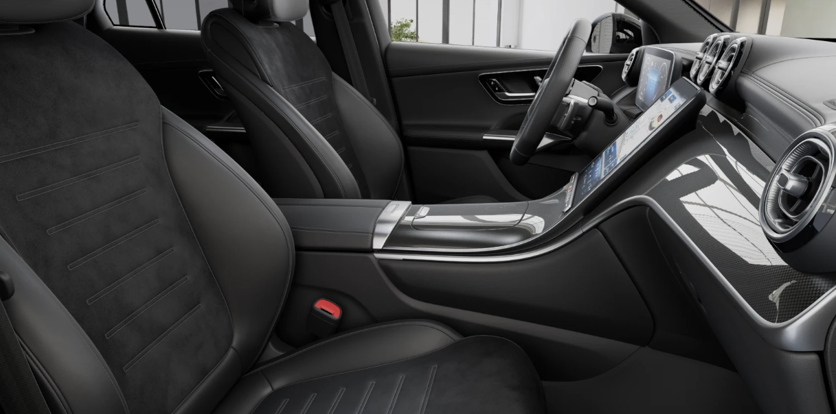 • Linia wyposażenia wnętrza AMG: deska rozdzielcza i górna część drzwi obszyta materiałem skóropodobnym,